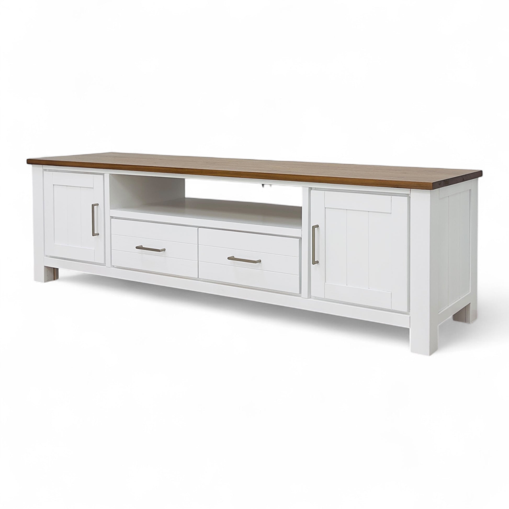 Crafted with the signature natural walnut wood top and brushed white pine body, it blends warm texture with crisp detail. Subtle panelling and clean lines keep the look fresh and refined, making it an effortless fit in both coastal and contemporary interiors.